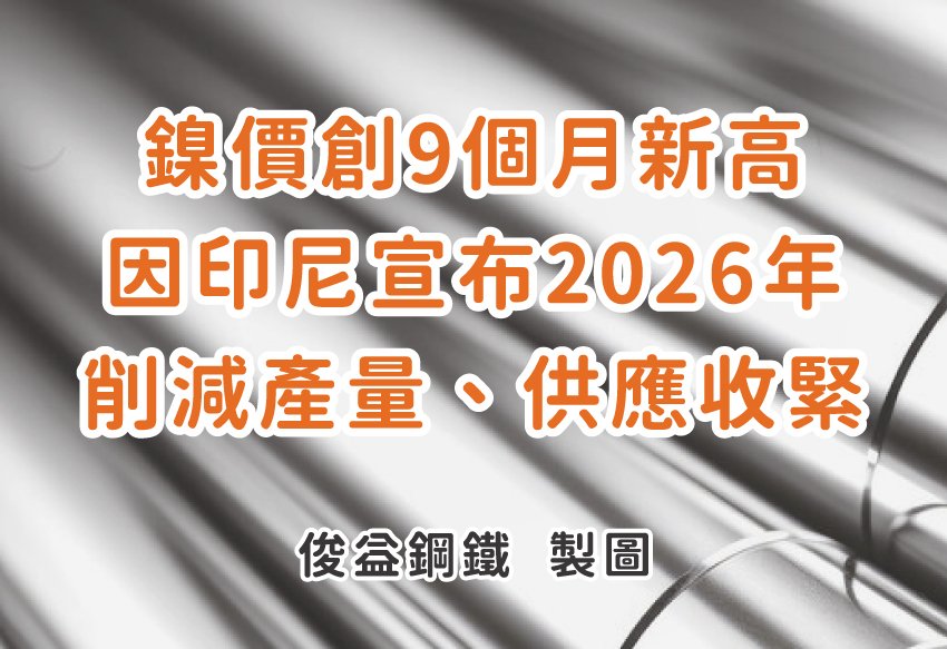 ▲鎳價創9個月新高 因印尼宣布2026年削減產量、供應收緊