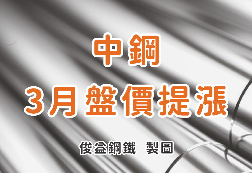 為順應國際行情走勢並反映煉鋼成本上漲壓力,中鋼針對三月份月盤產品全面調漲,