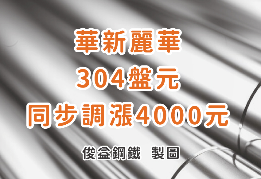 燁聯公司今(30日)304熱冷捲盤價上調4000元後,華新麗華公司也隨之開出4月不鏽鋼盤價,